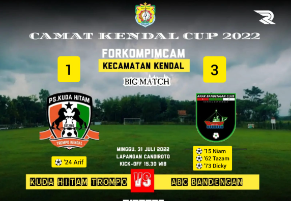 KABAR TROMPO - Minggu, 31 Juli 2022 Camat Kendal Cup putaran awal mempersembahkan laga Big Match antara Tim Kebanggaan Masyarakat Kelurahan Trompo PS Kuda Hitam melawan PS ABC Bandengan. Bisa dibilang Trompo kurang beruntung dalam undian Camat Kendal Cup ini, pasalnya beberapa tim sepak bola dari kelurahan lain mendapat undian bye alias lolos ke putaran kedua.