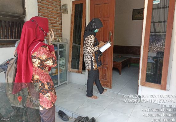 Tim Kelurahan Trompo yang diwakili oleh Ahmad Fauzi dan Nur Faizah selaku perwakilan dari Puskesmas Kendal 01 melaksanakan survei terhadap rumah radius 50 dari rumah pasien.