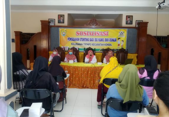 Trompo - Kelurahan Trompo melaksanakan kegiatan sosialisasi pencegahan stunting bagi ibu hamil dan remaja (16-08-2023) bertempat di Aula Kantor Kelurahan Trompo Kecamatan Kendal Kabupaten Kendal. Acara ini dihadiri oleh 15 peserta ibu hamil dan 25 peserta dari kalangan remaja. Tujuan dari kegiatan ini adalah mengedukasi masyarakat secara umum, terkhusus kepada ibu hamil dan remaja agar mengerti acara mencegah stunting sejak dini (bayi dalam kandungan). "Ibu-ibu harus belajar bagaimana cara mencegah stunting, ini pekerjaan rumah kita bersama" ucap dr. Hesty selaku pembicara sekaligus kepala UPTD Puskesmas Kendal 01.